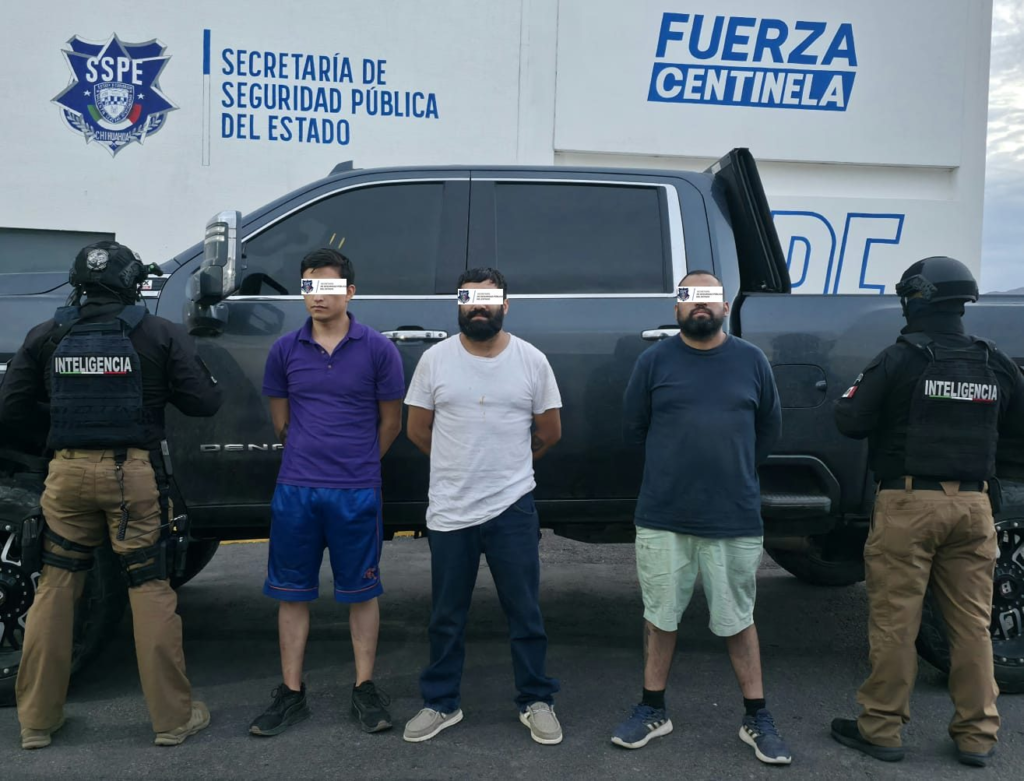 Ciudad Juárez, Chih. — La Secretaría de Seguridad Pública del Estado (SSPE), en coordinación con la agencia estadounidense Customs and Border Protection (CBP), detuvo a tres hombres que se encontraban en posesión de un vehículo con reporte de robo en Texas.