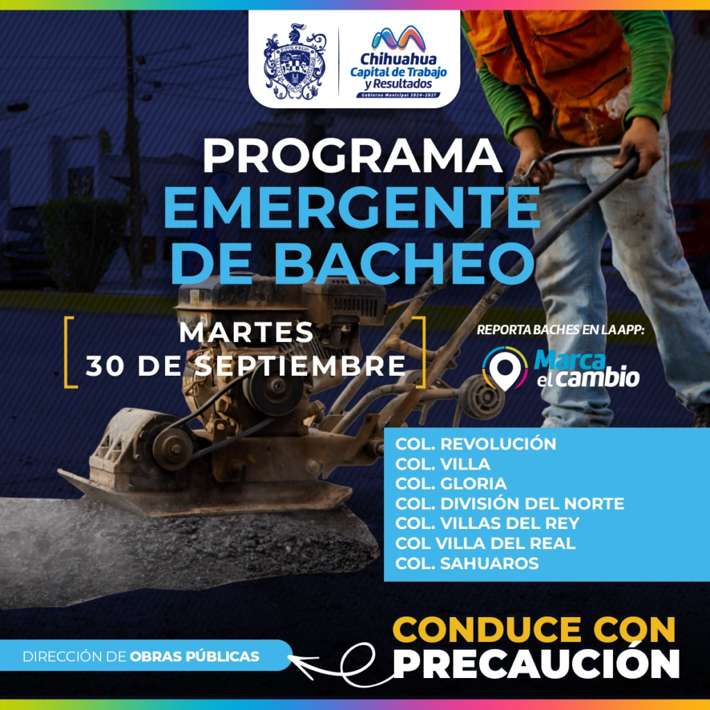 El Gobierno Municipal, a través de la Dirección de Obras Públicas, informó que este martes 30 de septiembre continuará con las labores del programa emergente de bacheo en distintas zonas de la ciudad, con el fin de mejorar las vialidades y brindar mayor seguridad a los automovilistas.