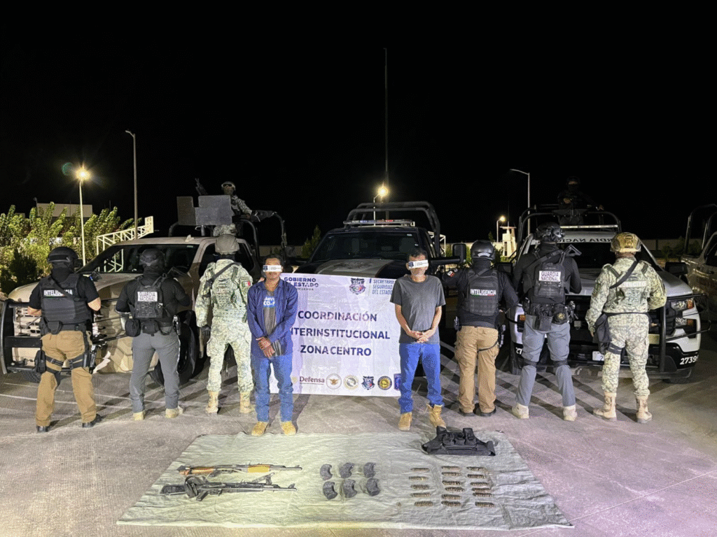 Coyame, Chih. — En un operativo conjunto realizado por la Secretaría de Seguridad Pública del Estado (SSPE), la Guardia Nacional y el Ejército Mexicano, fueron detenidos dos hombres de origen guatemalteco en posesión de armamento de alto poder, en las inmediaciones del entronque “El Álamo”, en el municipio de Coyame.