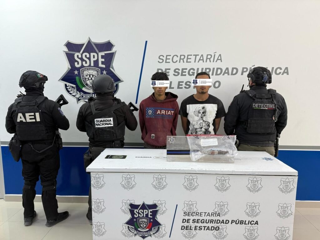 Ciudad Juárez, Chih.- Elementos del Grupo Especial de Detectives de la Secretaría de Seguridad Pública del Estado (SSPE), en coordinación con la Guardia Nacional, la Secretaría de la Defensa Nacional y la Agencia Estatal de Investigación (AEI), lograron la detención de dos individuos por su presunta participación en un intento de homicidio en la colonia Héroes de la Revolución.