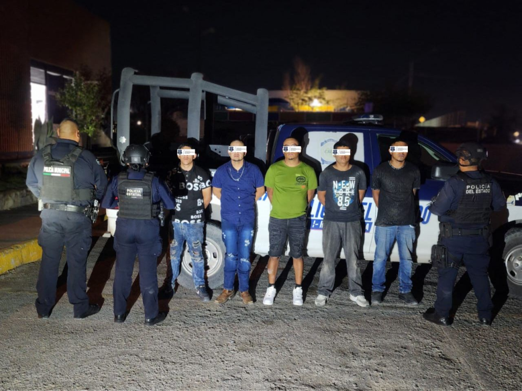 La madrugada de este jueves, elementos de la Secretaría de Seguridad Pública del Estado, en coordinación con la Policía Municipal, realizaron la detención de cinco hombres en la colonia Portales de San Pedro II por su presunta participación en el delito de homicidio, así como por violaciones a la Ley Federal de Armas de Fuego y Explosivos.