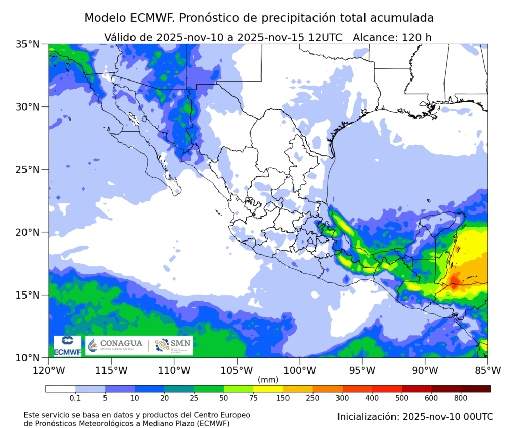 Pronóstico extendido: nueva amenaza al horizonte: Entre miércoles y viernes, un nuevo frente frío se asomará por el noroeste del país. Este sistema podría provocar tolvaneras en Baja California, Sonora y Chihuahua, además de un marcado descenso de temperatura en la región. No se descarta la caída de nieve o aguanieve en la Sierra de San Pedro Mártir y el norte de Sonora.
