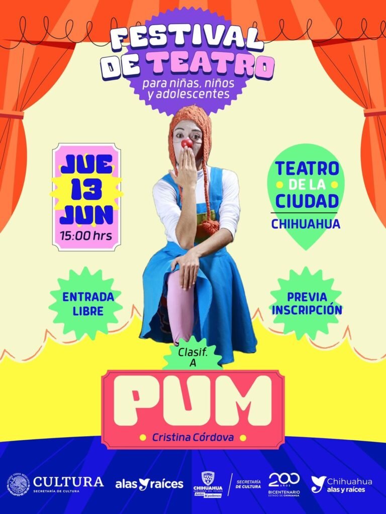 - Con el espectáculo “¡Pum!” a realizarse el jueves 13 de junio a las 15:00 horas en el Teatro de la Ciudad