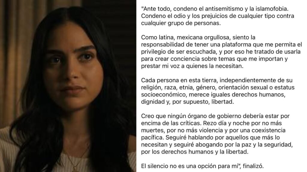 Barrera, conocida por su destacado papel en producciones cinematográficas y televisivas, se identifica con orgullo como latina y mexicana, aspectos de su identidad que influyen en su perspectiva y en el mensaje que busca transmitir. En el comunicado, la artista deja en claro que no permanecerá en silencio frente a las situaciones que considera críticas.