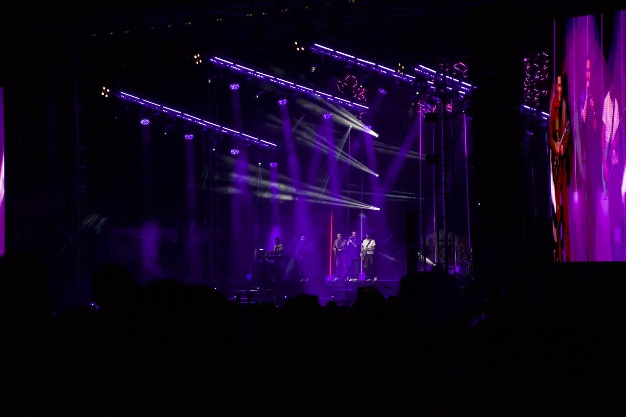 Con tres pantallas gigantes rectangulares y un espectacular juego de luces, Reik ofreció un gran espectáculo musical y visual.