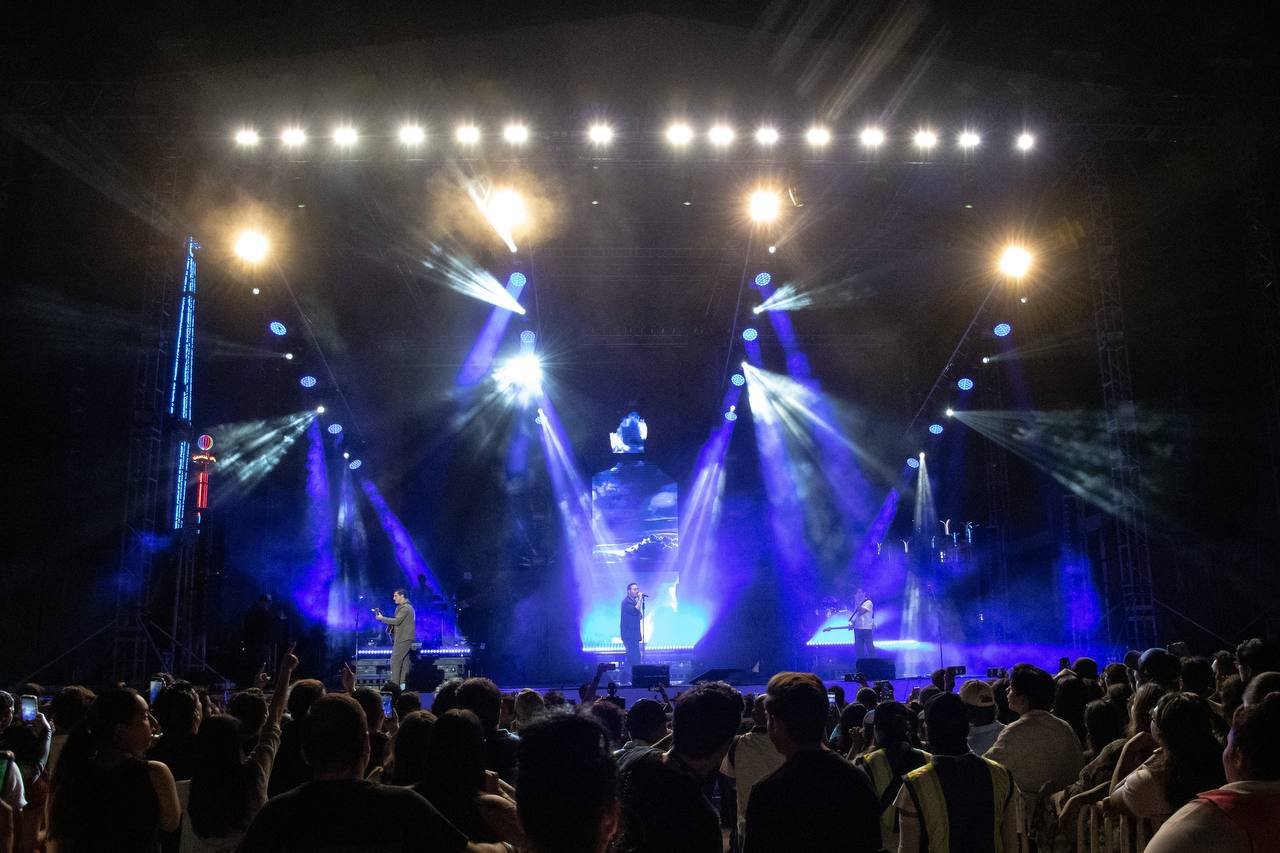 Jesús, Julio y Bibi aparecieron en una tarima en medio del escenario a las 9:28 horas para ofrecer una velada llena de éxito ante más 15 mil asistentes, que empezaron con su hit “Qué Vida la Mía”.
