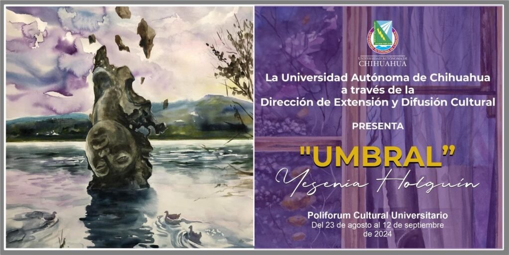 El día de ayer 22 de agosto la artista visual Yesenia Holguin inauguró su colección de pinturas «Umbral» conformada por 25 pinturas realizadas en técnica de acuarela que realizó en un festival de acuarela al que asistió en italia, la sede de este evento es el Polifórum Cultural Universitario y la exposición se encuentra en el edificio de Rectoría.