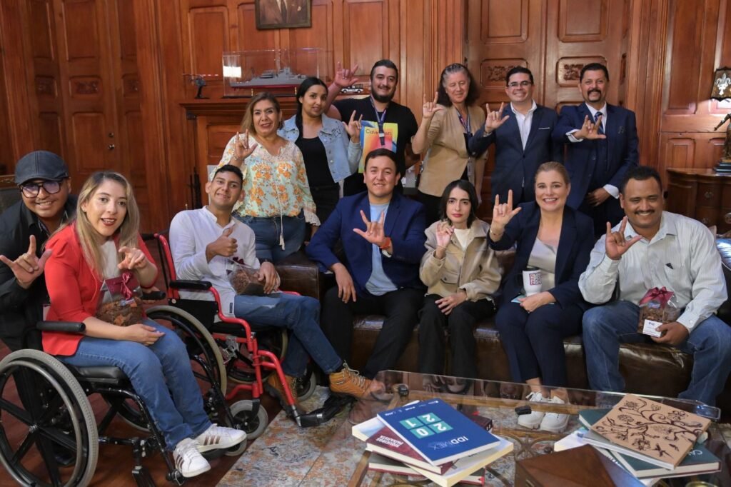 La gobernadora del estado, Maru Campos, recibió en Palacio de Gobierno a cuatro destacados alumnos de la Escuela de Artes y Oficios: Yahaira, Anahí, Fabián y Jesús. En un emotivo encuentro, la mandataria los reconoció por su esfuerzo, superación personal y resiliencia en su día a día, destacando las batallas cotidianas que enfrentan las personas con discapacidad para forjarse un mejor futuro.