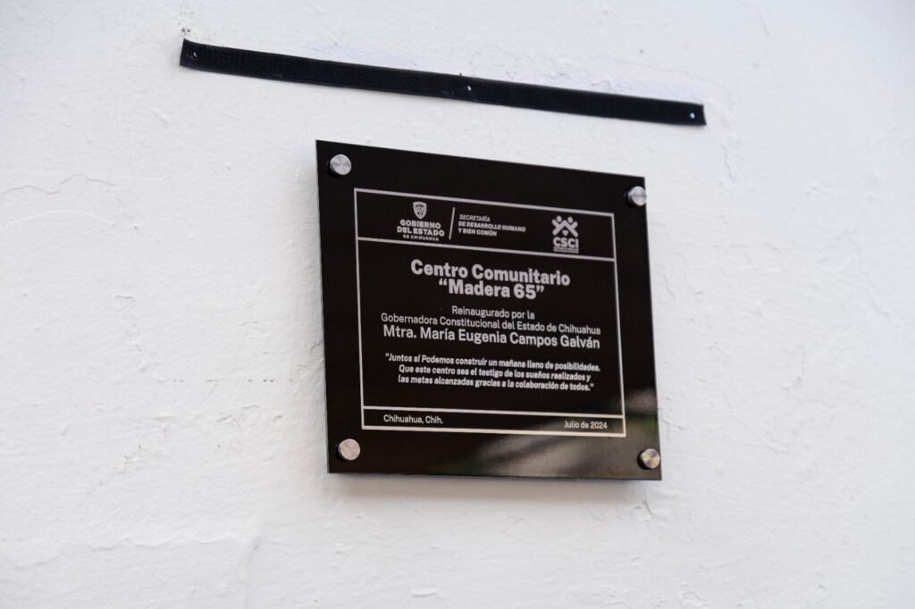 Maru Campos destacó el valor de estos centros comunitarios al decir: “Como Gobierno humanista queremos ayudarles en las cosas que sabemos que sí les cambian la vida, como lo es un centro comunitario, donde se pueden realizar talleres, actividades importantes para ustedes, para sus hijos y sus familias”. La gobernadora también enfatizó: “Enhorabuena por esto Madera 65, porque sabemos que ustedes merecen estos apoyos”.